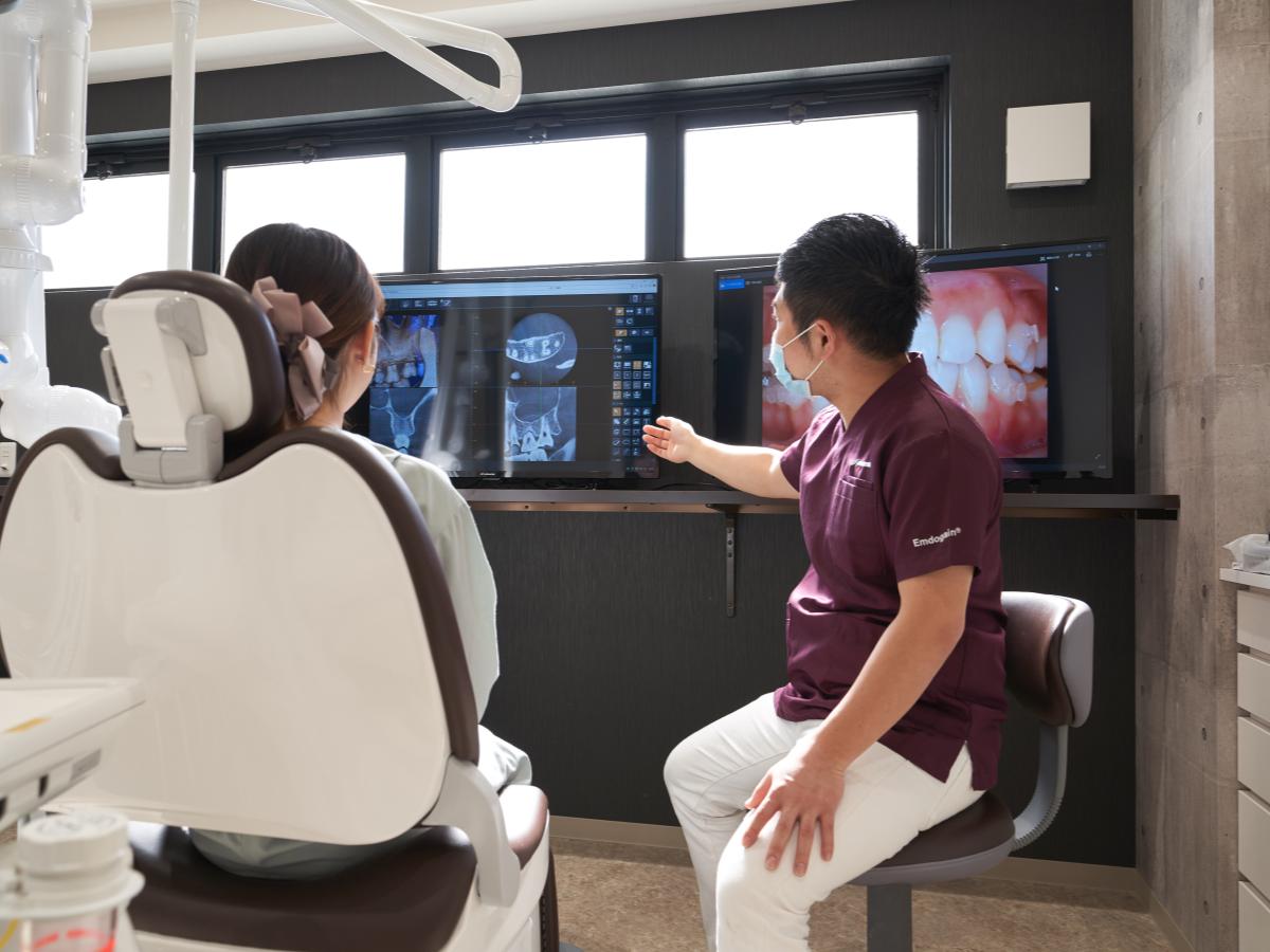 患者さまのお口の中の状態は、アニメーションやレントゲン、模型などを使ってご説明します。 視覚に訴えてわかりやすくお伝えすることで、理解が深まるよう努めています。